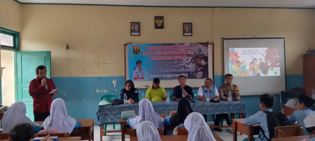 Tenjolaya, Cicurug — Jumat, 19 Desember 2025. Upaya pencegahan penyalahgunaan narkoba terus diperkuat sejak usia dini. Pemerintah Desa Tenjolaya bersama Satgas Anti Narkoba Desa dan Badan Narkotika Nasional (BNN) Kabupaten Sukabumi menggelar kegiatan Sosialisasi Bahaya Narkoba untuk Melindungi Generasi Muda di Lingkungan Sekolah. Kegiatan ini bertujuan meningkatkan pemahaman, kewaspadaan, serta daya tangkal pelajar terhadap ancaman narkoba yang kian kompleks.
